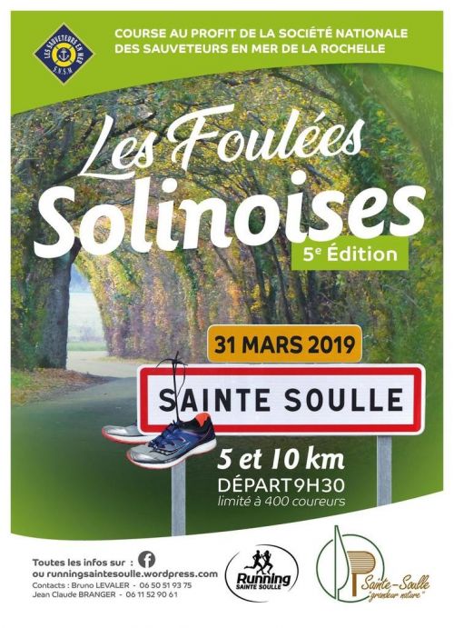 La course pédestre de 10 km appelée « La Solinoise » est organisée par l’association « Running Ste-Soulle », avec le soutien de la Mairie de Ste Soulle, des services techniques de la Mairie, et du Comité des fêtes de Ste SOULLE. Épreuve de course sur route avec un parcours fléché qui consiste en deux boucles de 5 km.