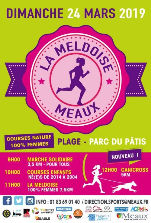 La Meldoise est la course nature solidaire officielle FFA que pour les filles. Elle se déroule sur 7500m depuis la plage de Meaux et dans le magnifique parc naturel du Pâtis. Petits points de bois, étang au cygne, plage de sable fin, pont suspendu, chemin bordant les champs et grande allées longeant La Marne : dépaysement garanti ! La Meldoise est aussi une épreuve solidaire contre le cancer avec versement d’une partie des frais d’ inscription et vente d'objets : chacun est invité à jouer le jeu : coureurs et spectateurs !