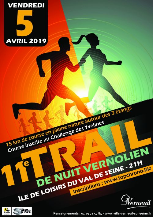 11ème Trail de Nuit Vernolien, à l'île de loisirs de Verneuil sur Seine à 21h00 avec au programme un 15 km en auto-suffisance autour des 3 étangs et une marche de 10km. Parcours sur sentiers et chemins forestiers.