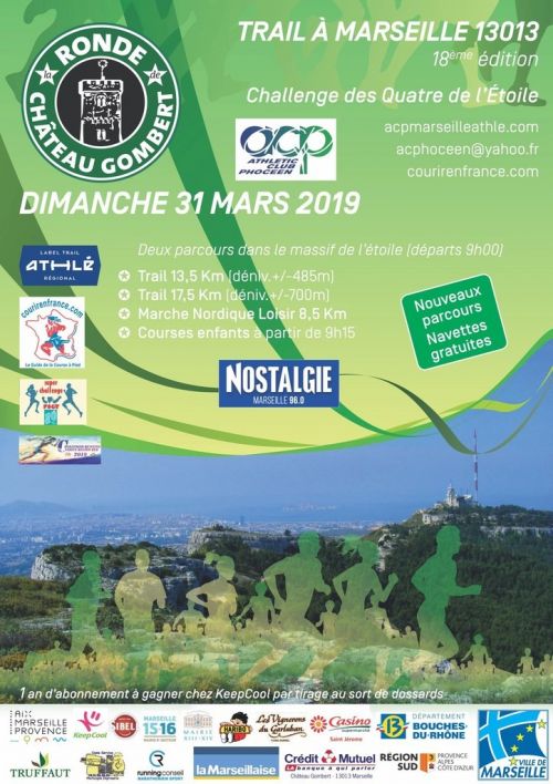 L'Athlétic Club Phocéen organise la 17ème édition de la Ronde de Château Gombert. Cette année encore, la Ronde de Château Gombert bénéficie du label régional FFA nature (trails découvertes) et s'associe de nouveau au Challenge des Quatre de l'Etoile avec les épreuves organisées par l'USC Septémes, la MJC Plan de Cuques, l'ACP Marseille et l'ASM Vieux Port. A cette occasion, les organisateurs des 4 épreuves reverseront 1€ par coureur à l'association caritative "Espoir contre la Mucoviscidose" créée par Rita CASO.