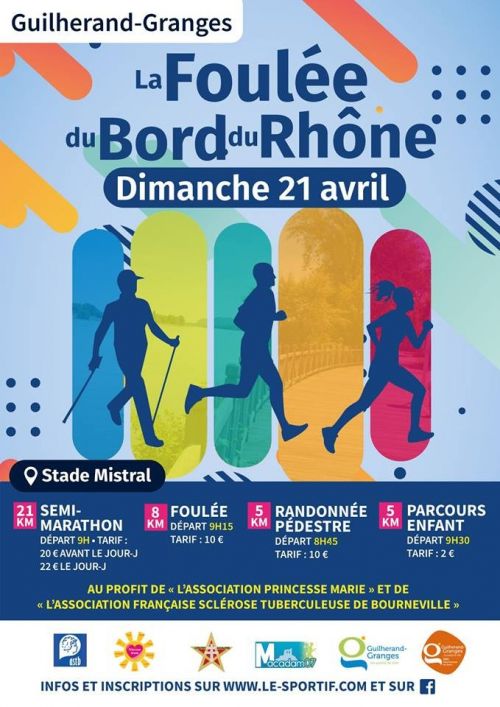 Trois différentes courses vous sont proposées cet année pour la 8ème édition : • Un semi-marathon inscrit aux listes départementales partant du Stade Mistral, longeant la berge du Rhône jusqu'au village de Chateaubourg avant de revenir en direction de l'arrivée au Stade Mistral. • Une course 8kms partant du Stade Mistral avant de faire une boucle. • Une marche nordique de 8 kilomètres