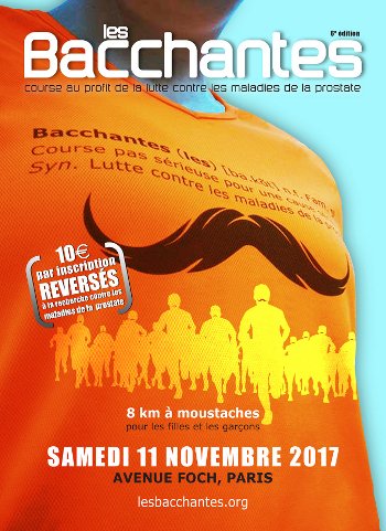 Les participants, filles et garçons âgés de 16 ans au moins, sont invités à porter une moustache (naturelle, collée ou dessinée) ! L’association les Bacchantes Paris collecte des fonds au profit de la recherche contre les maladies de la prostate. 10€ sont reversés pour chaque inscription.