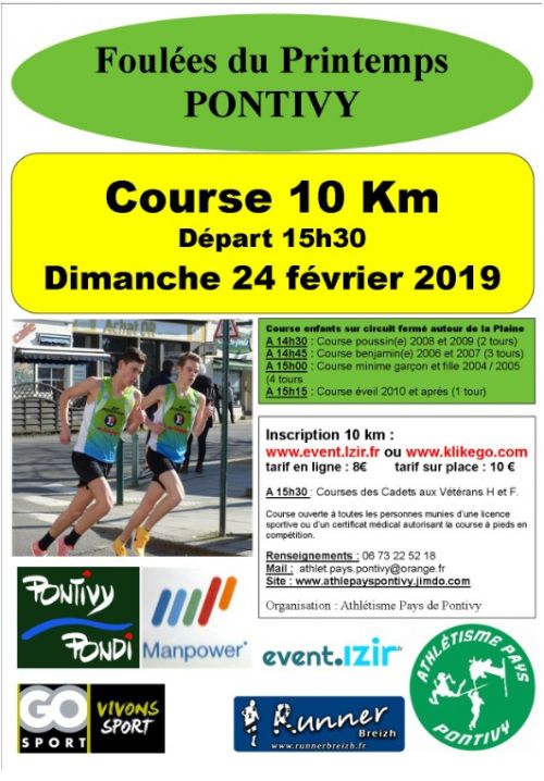 Course familiale d'animation à l'occasion de la fête foraine de Pontivy permettant de découvrir la vielle ville et la ville Napoléonienne. courses enfants à partir de 14h. Catégories autorisées CA->V5.