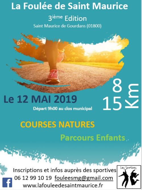 La Foulée de Saint Maurice est une manifestation sportive organisée par l’association Les Sportives sur la commune de Saint Maurice de Gourdans comprenant 5 courses à pied, inscrites au calendrier du CDCHS de l’Ain :