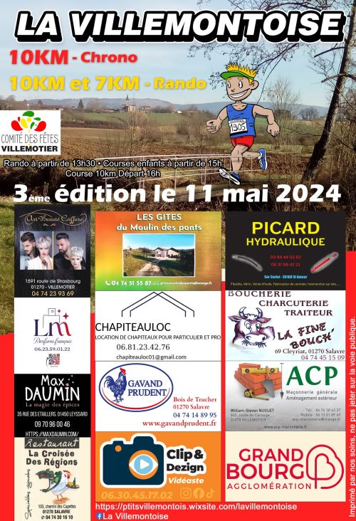 Le parcours 10 km est tracé dans la campagne Villemontoise. C'est une succession de passages en prairie et sous bois agrémenté d'un terrain vallonné.