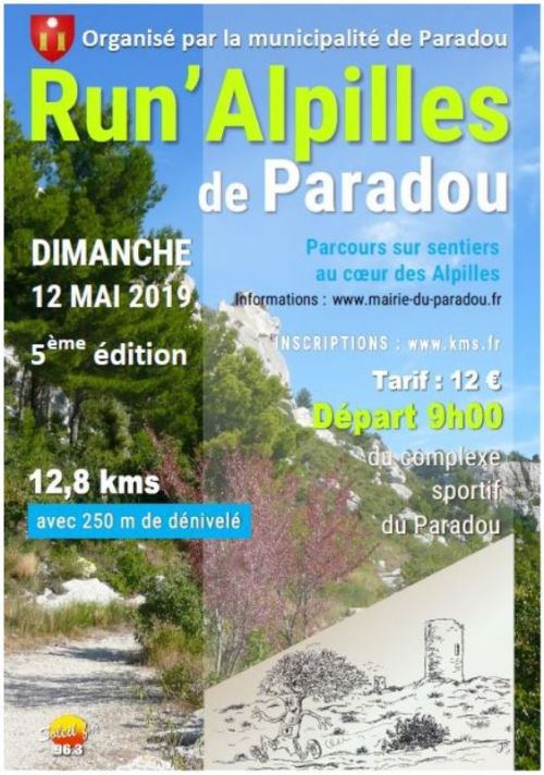 La course Run'Alpilles organisée par la municipalité du Paradou. Cette 5 ème édition se déroule, comme les précédentes, sur des sentiers au coeur des Alpilles. 12,8 kms et 250m de dénivelé. Le départ est prévu à 9 h du complexe sportif.
