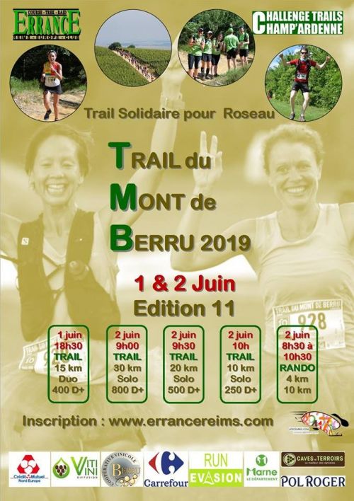 Course d'équipe en duo = 2 coureurs masculins ou féminines ou mixte. Course solidaire au profit de l'association "Roseau" de Reims. Trail uniquement sur chemins ( vignes, forets) sans aucune traversée de route. Récompenses aux 3 premières équipes hommes , femmes et mixtes du scratch. Catégories autorisées JU->V5.