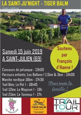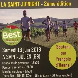 L’association "Les raisins du Trail" organise la "Saint-Ju’Night" à Saint-Julien en Beaujolais. Au programme, 3 parcours trails de 6, 12 et 21 km et une marche nordique, ainsi que des courses enfants.