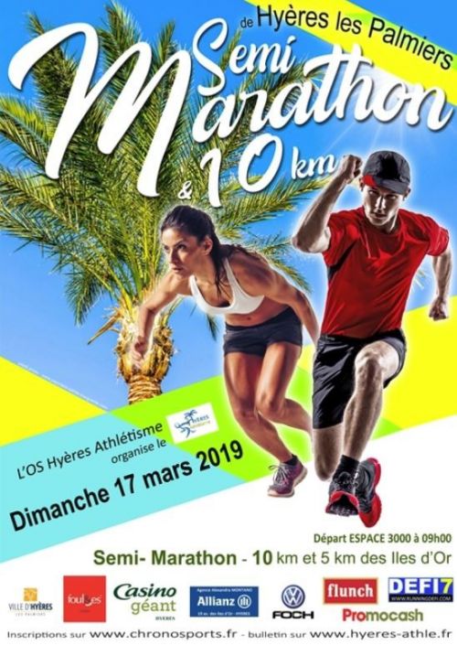 Le Semi-Marathon, le 10KM et le 5Km de Hyères : – Un semi et un 10km officiels possédant le label régional FFA; – un parcours ultra plat; – 2 courses classantes et qualificatives aux championnats de France et comptant pour le challenge SPIRIDON. – un chronométrage assuré par puce électronique jetable; – une seule boucle pour chaque course;