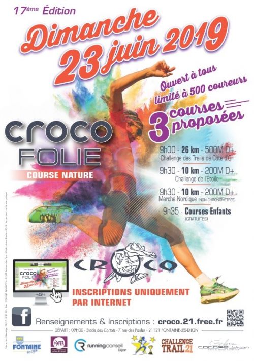 L’association, les Coureurs sur Route de Côte d’Or, CROCO, affiliée à la Fédération Française d’Athlétisme, organise la crocofolie 17ème édition. La crocofolie est une course à pied d’une distance de 26 km environ, qui emprunte les chemins et sentiers autour de la ville de Fontaine les Dijon ainsi que ceux des communes voisines d’Ahuy, de Daix et de Hauteville les Dijon. Le départ sera donné sur le site du gymnase des Cortots.
