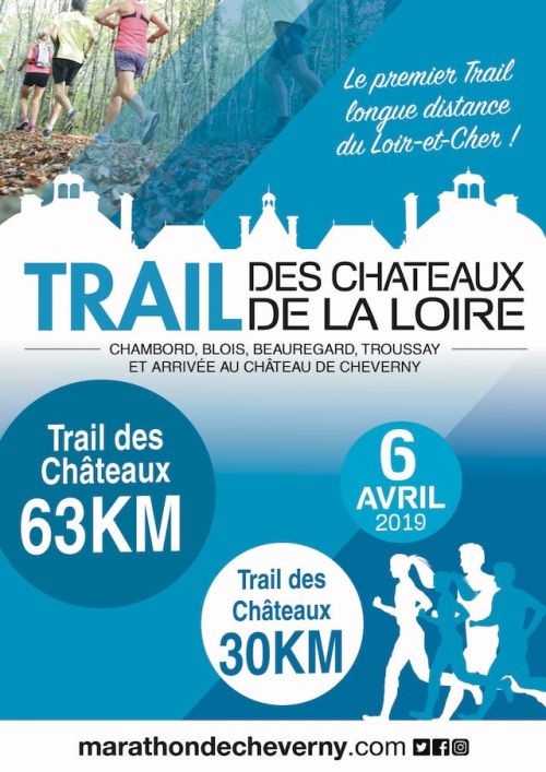 PREMIER TRAIL LONGUE DISTANCE DE LA LOIRE. Le départ du Trail des Châteaux de la Loire sera donné devant la salle des fêtes de Maslives ; celui du Petit Trail des Châteaux de la Loire au port de la Creusille à Blois. L’arrivée des deux courses se fera sur le village du Marathon de Cheverny.