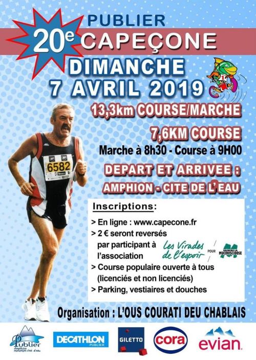 La Capéçone est une course pédestre organisée par l’association L’OUS COURATI DEU CHABLAIS avec la participation de la Mairie de PUBLIER et d’EVIAN OFF COURSE.