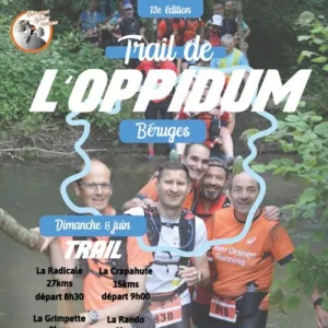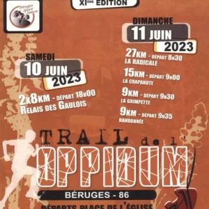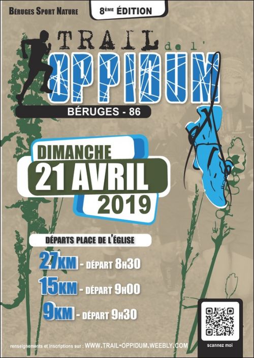 L'association Béruges Sport Nature et ses nombreux bénévoles vous invitent à participer au Trail de l'Oppidum. Venez courir sur les pas des Gaulois, au coeur de la vallée de la Boivre. Comme l'année passée, trois parcours seront proposés.