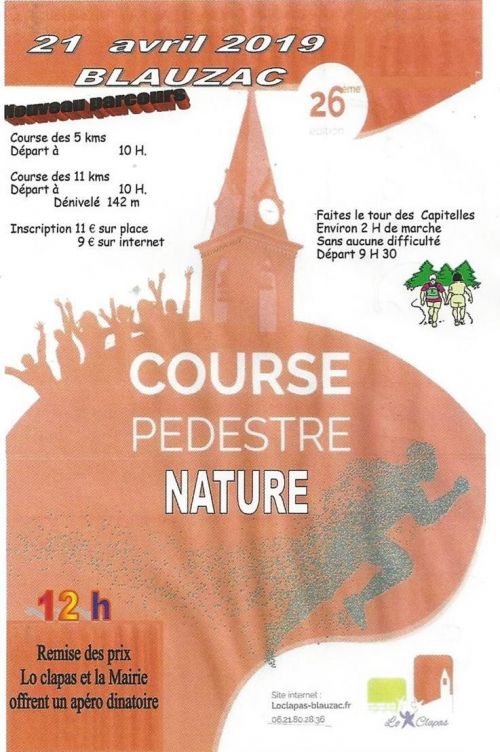 Course Nature sur un parcours de 11 km le 21 avril 2019