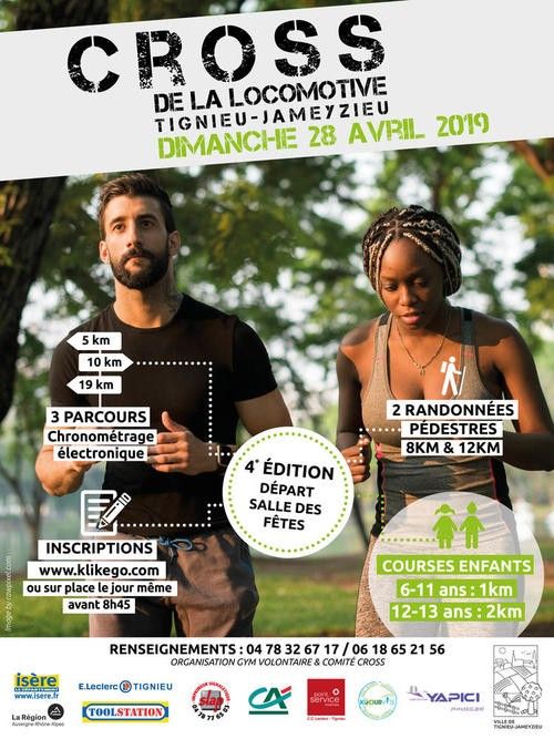 Cross de la Locomotive de Tignieu Jameyzieu. 3 circuits : 5km, 10km et 19 km et 2 Parcours enfants. Le circuit de 5 km se décompose en 50% goudron, 50% chemin, pour les deux autres circuits : 70% goudron et 30% chemin.