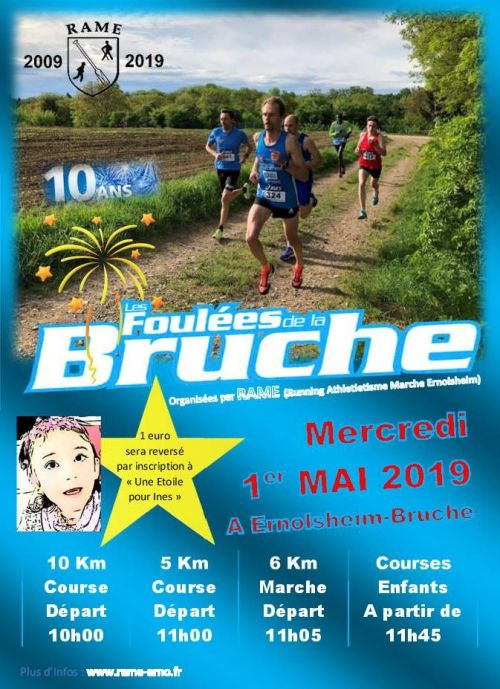 Activité phare de l’association Rame, les Foulées de la Bruche fêteront cette année leur 10e édition. Ces courses sportives annuelles, sur des parcours de 5 et 10 kms ainsi qu’une marche sportive chronométrée de 6 kms, soutiennent cette année une nouvelle association de proximité, Une étoile pour Inès, qui œuvre en faveur d’Inès, petite fille du village, porteuse d’une maladie inconnue et polyhandicapée.