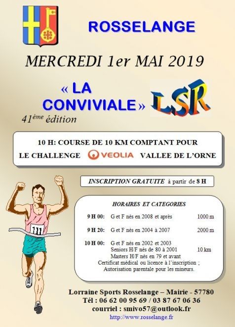 37ème édition de La CONVIVIALE; 2 boucles dans les rues de Rosselange et sur chemin piétonnier. Inscription gratuite pour toutes les courses