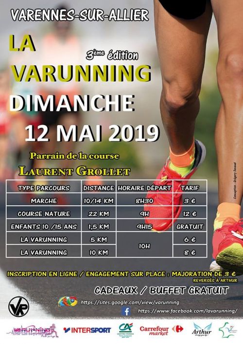 La 3ème édition de "La Varunning" est organisée par l’association Va-Running Sur Allier avec le soutien des Villes de Varennes Sur Allier, Montoldre, St Gérand de Vaux et St Loup.