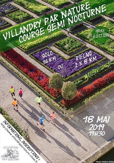 Course semi nocturne au Château de Villandry. 16km en relais empruntant routes, chemins et jardins du château. Arrivée aux bougies. Possibilité de plateau repas après la course.