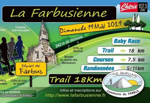 Le plaisir de parcourir des chemins autour de Farbus avec l'avantage de recevoir les encouragements du public en permanence ( le circuit passe plusieur fois dans le centre du village sans jamais emprunter les mêmes sentiers ) Catégories autorisées CA->V5.