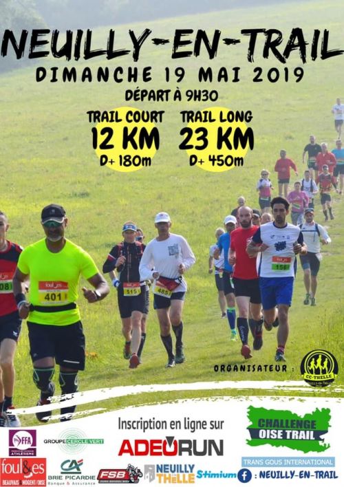 Une boucle de 12 km à travers des chemins et le bois Viville en auto-suffisance, ravitaillement à l'arrivée. Départ 9H30 au départ du complexe sportif Alain Mallon de Neuilly-en-Thelle. Course en faveur de la lutte contre le cancer. Catégories autorisées CA->V5.