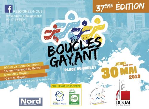 37ème édition des Boucles de Gayant. Comme chaque année, la manifestation réunira en centre-ville de Douai et particulièrement Place du Barlet. Temps fort de la vie douaisienne, cette manifestation est aussi un grand moment de rassemblement festif et convivial qui permet à tous de se détendre et vivre une agréable journée.