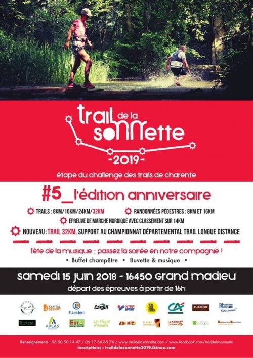 Trail de la Sonnette c'est 2 randos de 8 et 16km, une marche nordique de 14km et 4 Trails de 8, 16, 24 et 32km