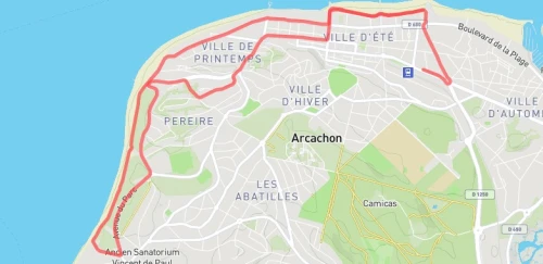 Course sur route de 10km officiellement mesurée.Parcours à 50% en front de mer. 3 côtes de faible pourcentage à 1/2 parcours. Départ en bout du quai Goslar, près de la capitainerie du port de plaisance d'Arcachon. Arrivée derrière la halle de l'Aiguillon.