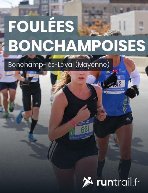 Course très populaire permettant de traverser la ville de Bonchamp avec un public nombreux. Le circuit alterne bitume, chemin et herbe. Cette course se déroule dans le cadre des festivités du 14 juillet. Nombreuses animations: jeux, orchestre, etc... Catégories autorisées CA->V4.