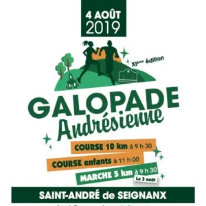 Rendez-vous pour la 11ème édition de la Galopade Andrésienne, en espérant vous voir courir toujours plus nombreux! Les coureurs s'élanceront de nouveau pour une course nature de 10 km. Un tracé mêlant route, chemin, forêt avec son lot de montées et descentes.