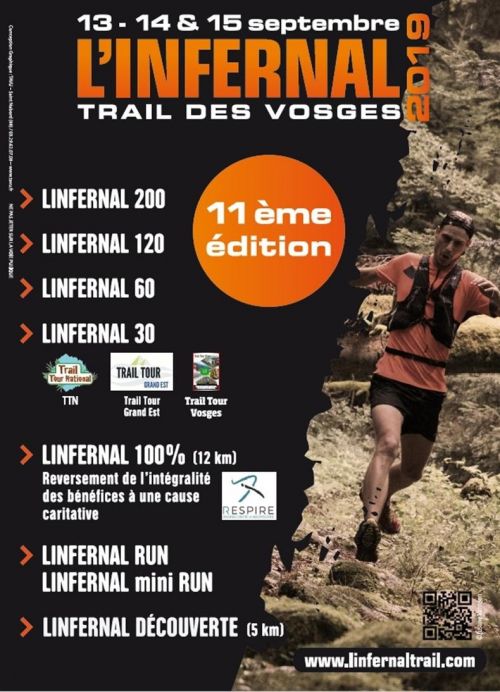 L'infernal Trail propose cette année 7 épreuves réparties des 3 jours de course, 5000 participants, 600 bénévoles, + de 250 km de sentiers balisés et sécurisés et 39 communes et 2 départements associés à la manifestation. 7 épreuves se déroulent tout au long de ce grand week-end, avec des tracés en milieu naturel, et plus de 90% de chemins et sentiers au cœur de la forêt vosgienne.