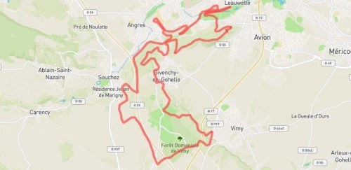 Vous emprunterez le Parcours du 24 km, et sur les hauteurs de Givenchy en Gohelle km 18, vous filerez vers la gauche pour le centre de la commune et rejoindre les hauteurs de Vimy et son monument Canadien, belle montée ! Un ravitaillement vous y attend.