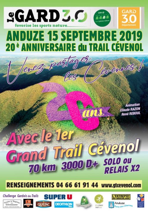 Pour les 20 ans du Trail Cevenol, première édition du Grand Trail Cévenol avec un parcours de 70km ! Le Grand Trail Cévenol, une course unique à travers les Cévennes pour découvrir la Porte des Cévennes et les Gardons. Une expérience incroyable au départ d'Anduze.