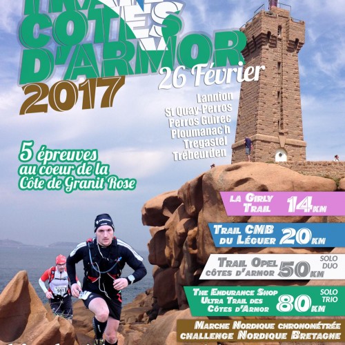 Trail de 78km en Semi-suffisance au départ de Lannion (Parc Nevez). Départ le dimanche 26/02/17 à 7h30 du parc Nevez de Lannion. Départ en direction de Perros Guirec par le GR34B puis le long de la côte par le GR34 jusqu'à revenir à Lannion.