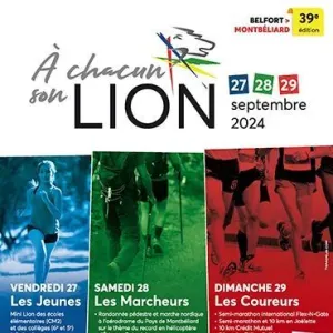 Le Semi-Marathon International du Lion 2018 emmènera les coureurs de Montbéliard vers Belfort le dimanche 23 septembre, le sens est inversé chaque année. L’année passée, plus de 4500 coureurs ont participé au 10 Km, à la Féline, au semi-Marathon et au mini-Lion. Les horaires, 9h30 : 10 Km au départ de Châtenois Les Forges, 10h00 : semi-marathon international « Le Lion » au départ de Montbéliard, 10h15 : La Féline au départ d’Andelnans, 8h55 : Mini Lion poussins (1 Km) à Belfort, 9h05 : Mini Lion benjamins (2 Km) à Belfort, 9h25 : Mini Lion minimes (3 Km) à Belfort.