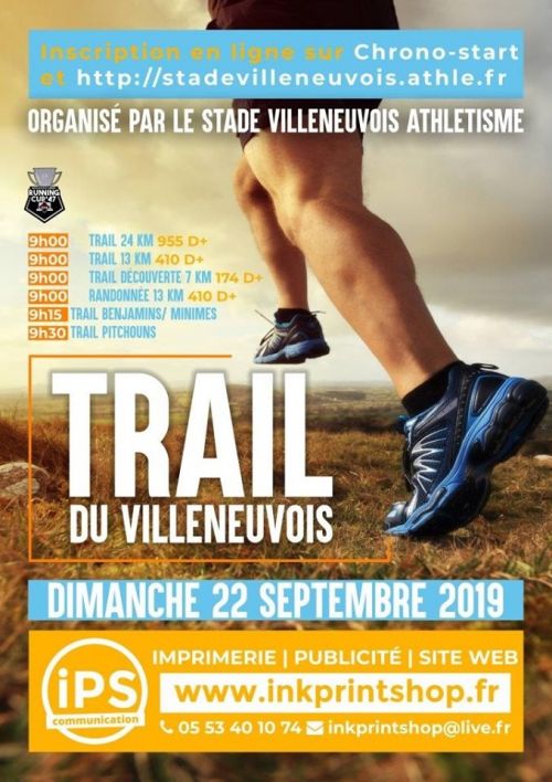 Le Trail du Villeneuvois, organisé par le Stade Villeneuvois Athlétisme, se déroulera à Villeneuve sur Lot. Trois courses, 7km, 13 km et 24 km sont ouvertes aux licenciés et non licenciés, catégories cadet à vétéran. Des postes de ravitaillement sont prévus sur le parcours. Une course de 2 km est ouverte pour les catégories benjamin et minime. Une course de 0.998 km (Trail Pitchoun) est ouverte pour les plus petits.
