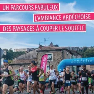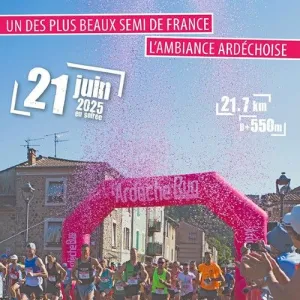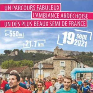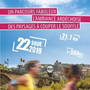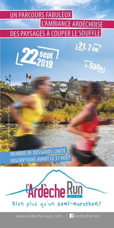 Semi-marathon au départ d'Aubenas, arrivant sur la célèbre place d'Antraïgues, en passant par le difficile mais magnifique col de Genestelle. Paysages à couper le souffle et ambiance ardéchoise garantis. Possibilité de faire équipe avec un enfant : on court le dernier kilomètre ensemble. Possibilité de relais (au 10e km).