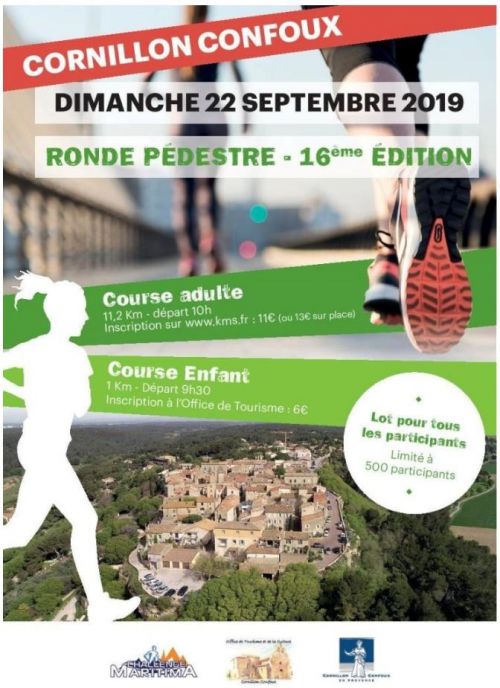 16ème édition de la Ronde Pédestre Cornillon Confoux avec un parcours adulte et une course enfant.