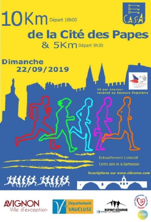 Le Club Athletic Sport Avignonnais organise, avec le soutien de la Ville d’Avignon, le 10 km et le 5km de la Cité des Papes. Les 2 courses sont ouvertes à toutes et tous, de cadets à Masters. Un challenge par équipe de quatre personnes comprenant deux filles et deux garçon est prévu.