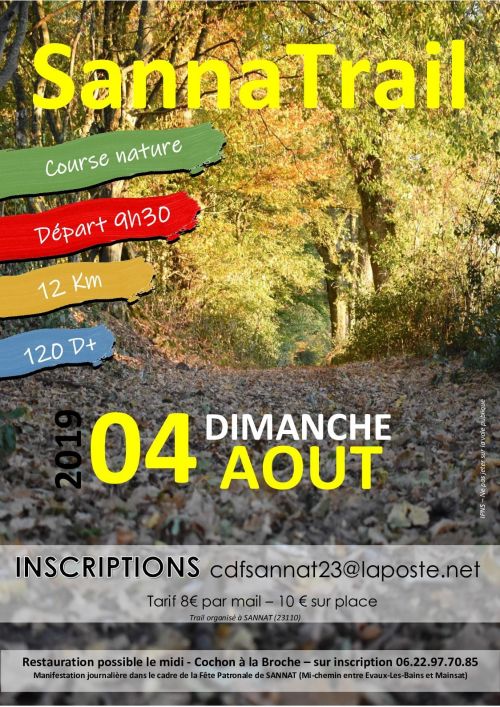 Le Sannatrail est une course nature avec un parcours varié entre chemin et sous bois qui vous présentera de jolis paysages. Catégories autorisées CA->V5.