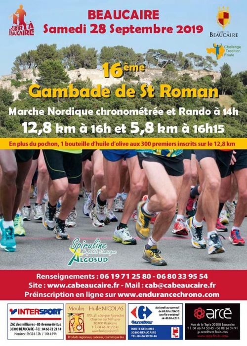 16ème édition de la Gambade de Saint Roman avec un parcours 100 % plat. 1 ravitaillement parcours - 1 ravitaillement arrivée.