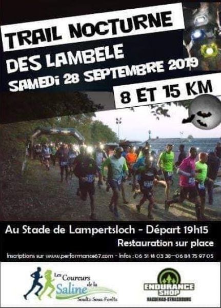 L'Association des coureurs de la Saline de Soultz-sous-Forêts organise son trail nocturne : 2 parcours à la lumière des lampes frontales ! Le trail nocturne des Lambele propose uniquement un parcours en forêt, hormis un court passage dans le village.