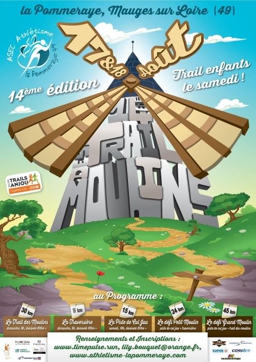 14è édition du Trail des Moulins, organisé par l'ASEC. Découvrez la Vallée de la Loire et ses fours à chaux, les vallées des moulins et du ruisseau St Denis avec leurs ponts et jardins sauvages. Le Trail des Moulins participe au Challenge départemental Trails Anjou Ouest France / Logémaine. Pour les plus aguerris, les Défis "Petit" ou "Grand Moulin" permettent la pratique de trails entre traces, traversées de ruisseaux, sentiers, chemins et routes de campagne sur les 2 jours : Défi ‘Petit Moulin’ (15 km + 9 km) Défi ‘Grand Moulin’ (15 km + 30 km)