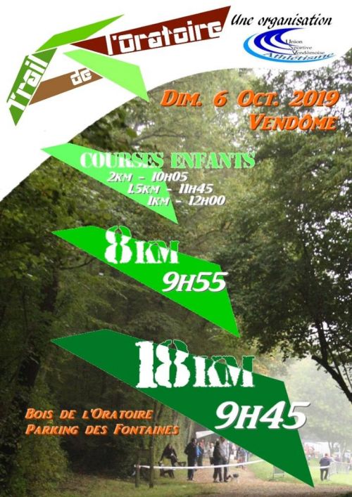 Le Trail de l’Oratoire est organisé par l’Union Sportive Vendômoise Athlétisme (USV Athlétisme) et se compose de 2 parcours natures. Ce trail unique en Loir-et-cher, organisé par l'USV Athlétisme vous fera découvrir le bois de l'Oratoire sur un parcours varié et totalement en forêt.