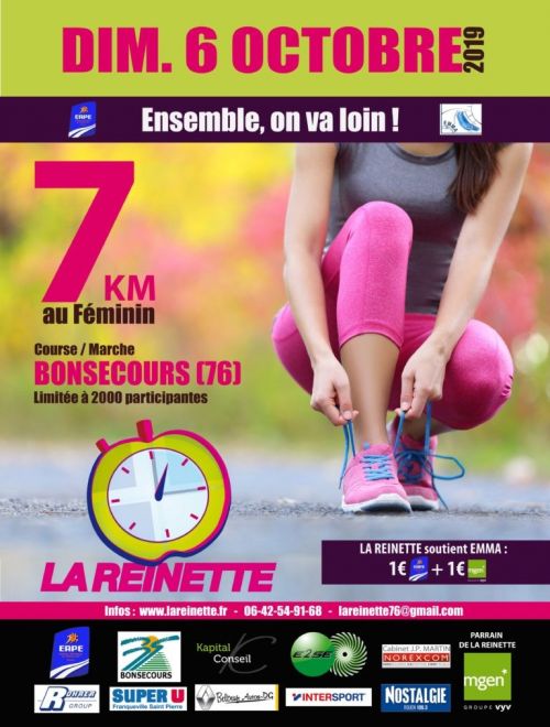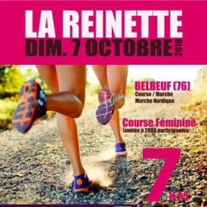 La Reinette revient pour sa 14ème édition à Belbeuf (76). Une course exclusivement féminine en partenariat avec l’association Emma qui lutte contre le cancer du sein. Départ à 10h pour 7km avec au choix : une course, une marche, et une marche nordique sur un parcours accessible à toutes. Attention les dossards sont limités à 2000 participantes.