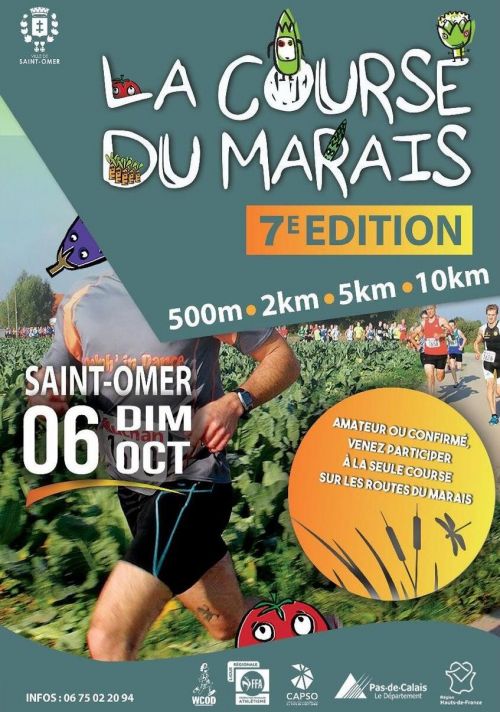 La Course du Marais se compose de deux parcours : l’un de 10 km, l’autre de 5km. Des courses de 300m à 2km sont également prévues pour les jeunes (des mini-poussins à benjamins). Départ et arrivée Place de la Ghière à Saint-Omer.