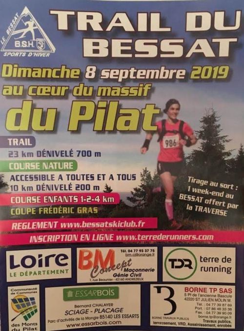 20ème édition du Trail du Bessat au coeur du massif du Pilat. Sur les crètes et vallons du Pilat, le coureur s'élance sur des chemins forestiers et des chemins de campagne, dans un relief de moyenne montagne, avec différentes variétés de surfaces et de paysages.