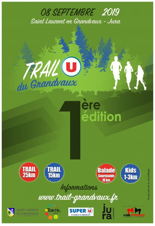 1ère édition du Trail U du Grandvaux avec 2 parcours trail, une Balade gourmande et une course enfants.