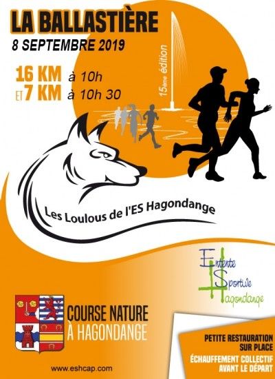 La Ballastiere est une course nature à Hagondange avec départ etarrivée au Plan d'eau la Ballastière, devant l'école rue du Dr Viville à Hagondange. Ravitaillements, parking, douches, buvette, saucisses, grillades, frites, consigne clés + affaires personnelles.