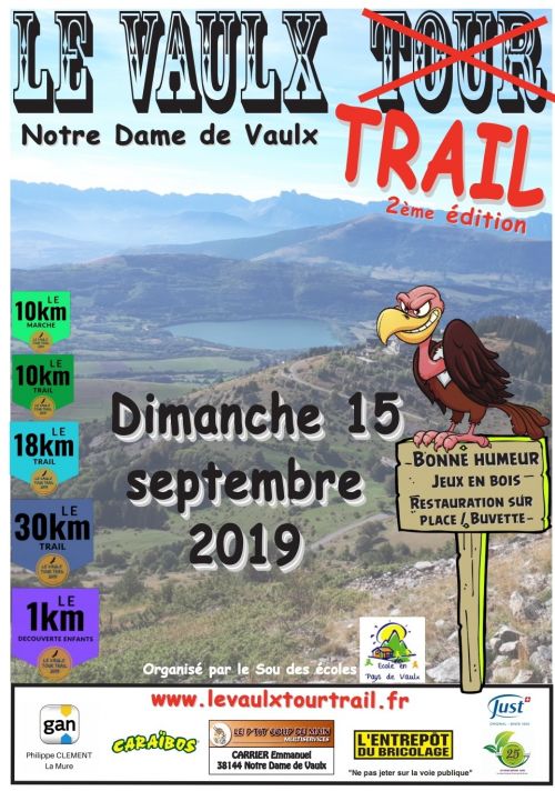 2ème édition du Vaulx Tour Trail, course familiale organisée par le sou des écoles en pays de Vaulx. Des parcours pour tous en course ou en marche, le tout dans un cadre exceptionnel, entre lacs et montagne. Les différents parcours vous permettront de découvrir des sites comme la Pierre Percée, les lacs de montagne du plateau, le Connex et nos magnifiques pâturages...